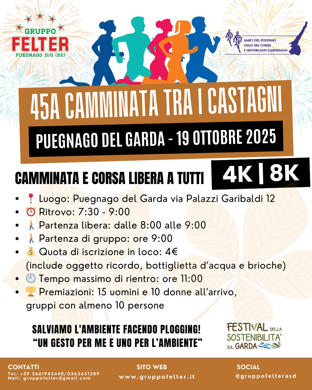 Ritrovo ore 08.00 presso "Felter Sport" - Via Palazzi Garibaldi, 12 - Puegnago del Garda