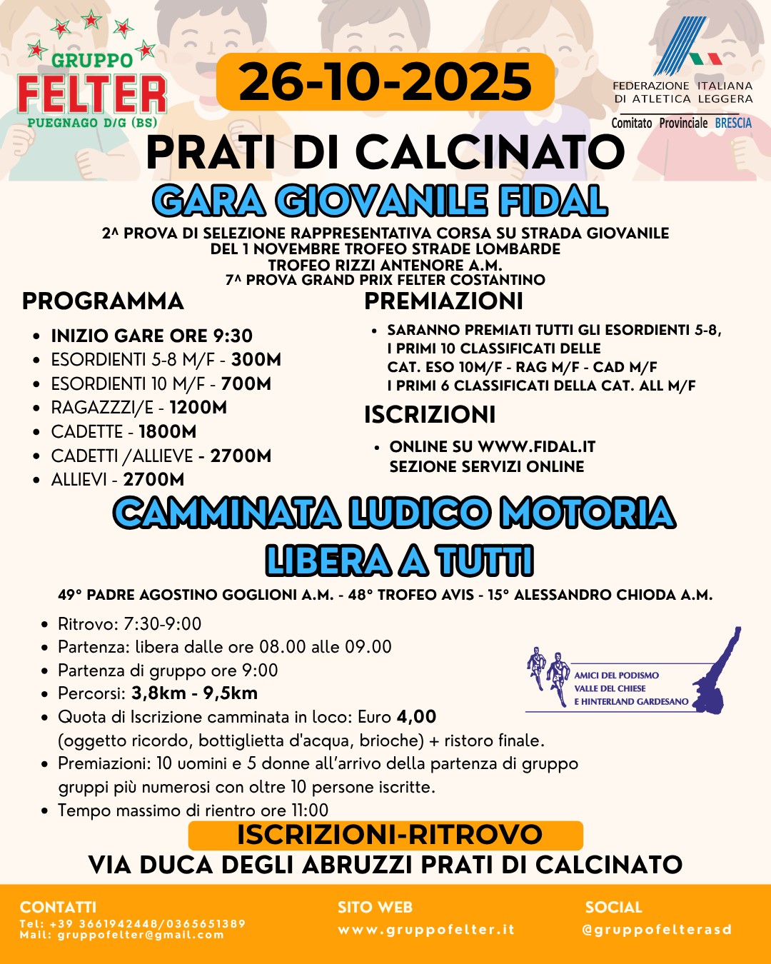 "49° TROFEO PADRE AGOSTINO GOGLIONI A.M. - 48° TROFEO AVIS - 15° TROFEO A.CHIODA A.M. - 7ª PROVA GRAN PRIX FELTER COSTANTINO CORSA SU STRADA GIOVANILE FIDAL"